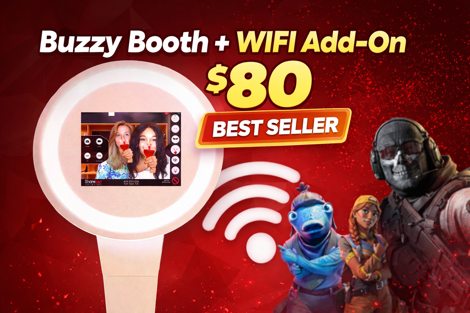 Add a Buzzy Booth PHOTO BOOTH for just $60 for 1.5 HOURS!
